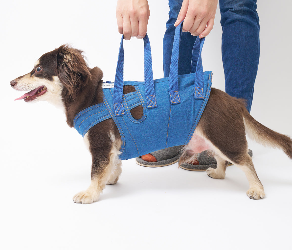 【持ち手1+後足サポート】アシスタントバンド(国産デニム)~犬の介護歩行補助ハーネス